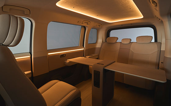 - The console box next to the driver’s seat unfolds into a table that opens up the central space, turning it into a comfortable area for work, study, or hobbies.