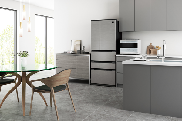 This large-capacity refrigerator combines a slim, beautiful kitchen design with enhanced AIoT-driven energy saving performance