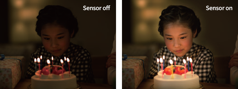 Models released in 2024 have a new feature that enables the brightness and color temperature sensor to detect the brightness of the room in which the TV is being watched and automatically adjust not only the brightness and gradation levels but also the color temperature of the picture according to changes in the color of the external light and lighting. This makes the picture easier on the eyes as well as reduces unnecessary power consumption.