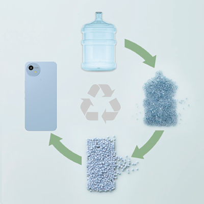Like the previous model, the AQUOS wish3, the casing uses recycled plastic, and this environmental-mindedness extends to the slim packaging that cuts down on paper usage. In addition, the percentage of recycled plastic used in the casing has increased, making this a more environmentally friendly model than the previous one.
