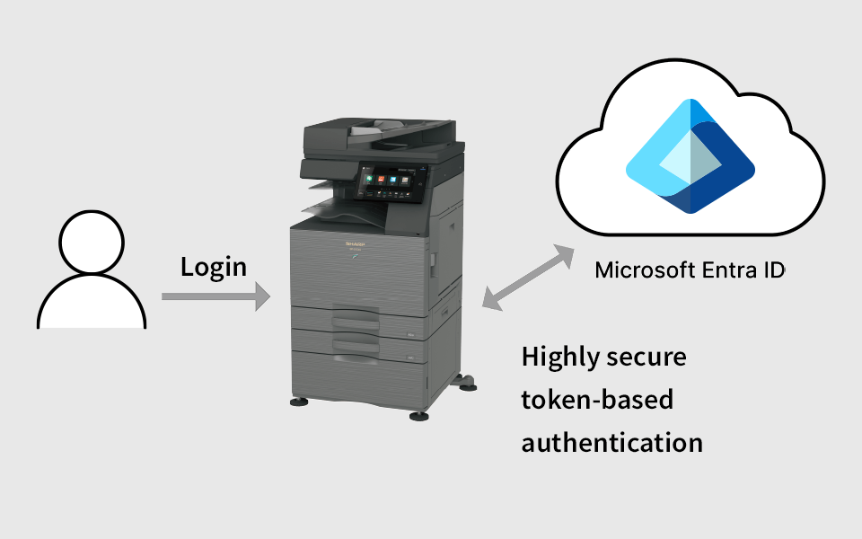 The MFP supports Microsoft Entra ID, a secure cloud-based service for managing user identities and controlling device access. Token-based authentication gives you safe and easy access to any Microsoft service with a single login.