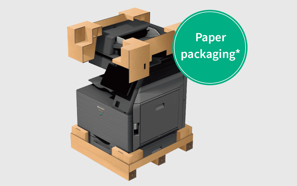 Sharp has reduced plastic waste by using recyclable corrugated cardboard instead of polystyrene foam for the MFP’s packaging.