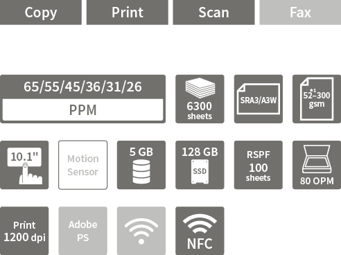 The RSPF (reversing single pass feeder) efficiently feeds in either one- or two-sided originals—in batches of up to 100 sheets. With scanning speeds of up to 80 opm*3 (one-sided), the MFP can complete large jobs with ease and efficiency.