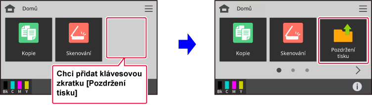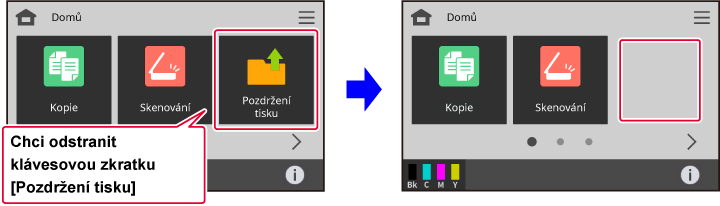 Nastavení jsou uložena v produktu a použita.Nepotřebné klávesové zkraty lze smazat.