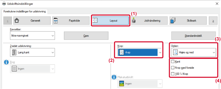eller [4-op] (4 sider pr. ark), får man de følgende udskrivningsresultater