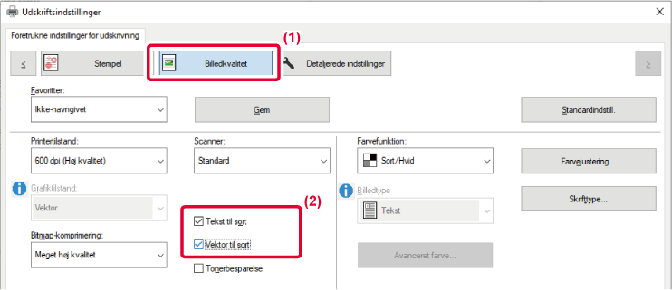 Vælg, om du ønsker at udskrive sort dataområde med kun sorte farvetoner. |