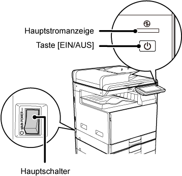 den Hauptschalter ausschalten, drücken Sie zunächst die Taste [EIN/AUS]