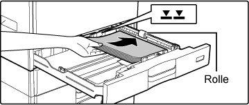 Sie das Papier unter der Rolle auf der rechten Fachseite ein.