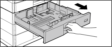 Legen Sie keine schweren Gegenstände auf die Kassette und drücken Sie die Kassette nicht nach unten.Ziehen Sie das Papierfach heraus.