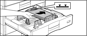 Legen Sie das Papier mit der Druckseite nach oben ein. Der Stapel darf nicht über die Markierungslinie hinausragen (maximal 500 Blätter).Schieben Sie das Papierfach vorsichtig in das Gerät zurück.