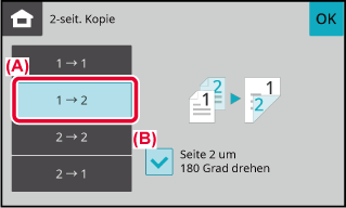 Antippen, um den Kopier-, Druck- oder Übertragungsvorgang