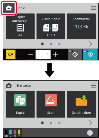 um die Startseite auf dem Touch-Panel anzuzeigen. Auf der Startseite