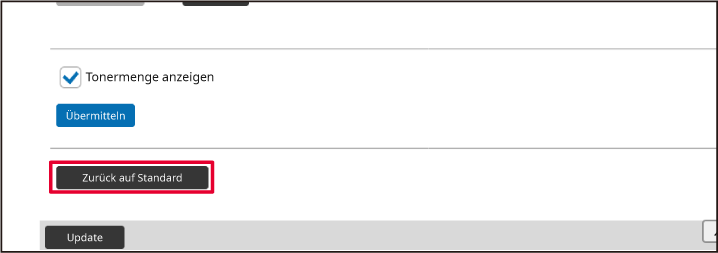 Für manche Einstellungen ist es ggf. erforderlich, Ihr Benutzerpasswort einzugeben, nachdem Sie auf [Heimbildschirm Einstellung] geklickt haben. Wenn Sie keine Benutzerauthentifizierung ausgeführt haben, müssen Sie das Administratorenpasswort eingeben.Klicken Sie auf [Einstellungen der Parameter] und dann auf die Schaltfläche [Zurück auf Standard].