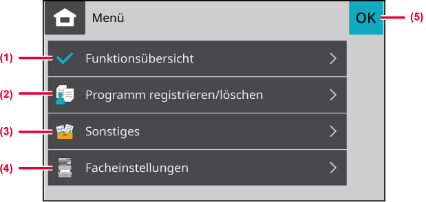 Im Menümodus können Sie eine beliebige Funktionseinstellung