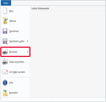 Wählen Sie im WordPad-Menü [Datei] die Option [Drucken] aus.