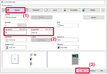 Der Druckvorgang wird gestartet.Der Druckertreiber-Einstellungsbildschirm