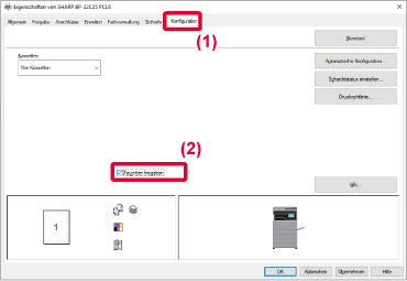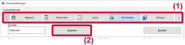 Erläuterungen der Einstellungen können Sie in der Druckertreiberhilfe finden.Wenn Sie dieses Gerät als geteilten Drucker
