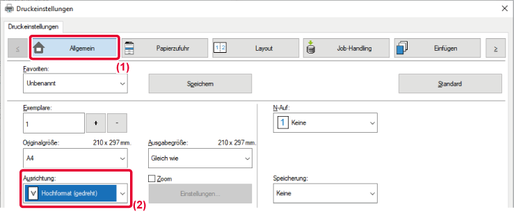 - Wählen Sie [Hochformat (gedreht)] oder [Querformat (gedreht)] in "Ausrichtung"