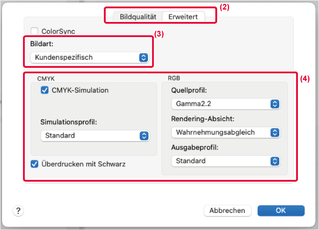 zu verwenden, aktivieren Sie das Kontrollkästchen [ColorSync], sodass