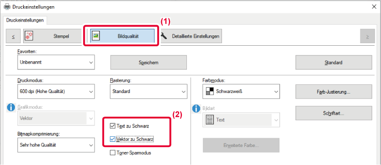 Wählen Sie aus, ob schwarze Datenbereiche nur mit schwarzem Toner gedruckt werden sollen. |