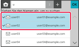 der Benutzerliste für den leichten Zugang aus dem Adressbuch angezeigt.