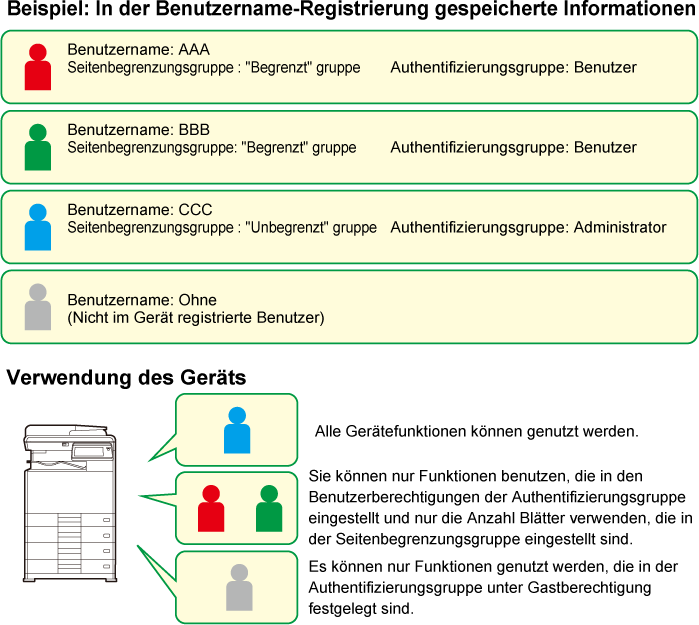 Gruppe für Kopien und Druckjobs zur Verfügung stehen. Außerdem können