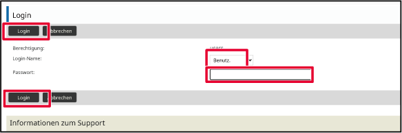 • Weitere Einzelheiten zum Anmeldevorgang bei aktivierter Benutzerauthentifizierung finden Sie unter " BENUTZERAUTHENTIFIZIERUNG".