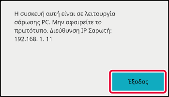 Όταν επιλεγεί η λειτουργία σάρωσης σε Η/Υ, στο μηχάνημα μπορεί να χρησιμοποιηθεί μόνο το πλήκτρο [Έξοδος] που εμφανίζεται στην οθόνη αφής. Κανένα άλλα πλήκτρο δεν μπορεί να χρησιμοποιηθεί.