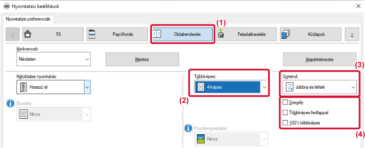 (laponként 4 oldal) pont kiválasztása esetén a választott oldalsorrendtől