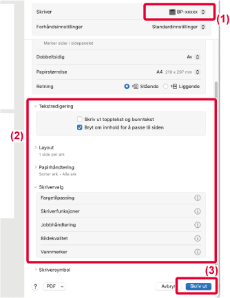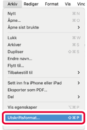 Velg [Utskriftsformat] på [Arkiv]-menyen, og velg skriveren.