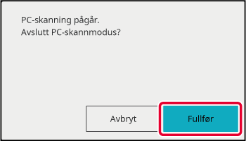 Når PC skannemodus er valg, vil du kun kunne bruke [Avslutt]-tasten på berøringspanelet på maskinen, ingen andre taster kan brukes.