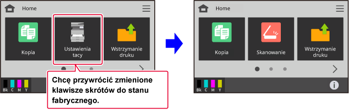 Ustawienia zostaną zapisane w urządzeniu i zastosowane.Ta część opisuje sposób przywracania fabrycznych