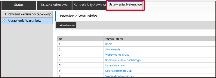 Część ustawień może wymagać podania hasła po kliknięciu [Ustawienia ekranu początkowego]. Jeśli nie wykonano autoryzacji użytkownika, należy wpisać hasło administratora.