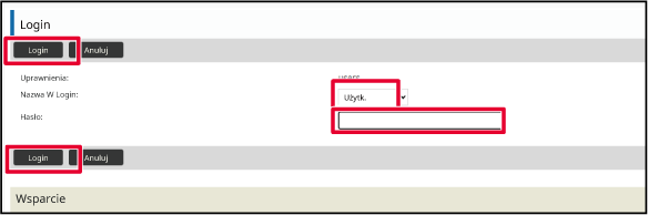• Szczegółowe informacje na temat procedur logowania, gdy włączone jest uwierzytelnianie użytkownika, zawiera sekcja "AUTORYZACJA UŻYTKOWNIKA".