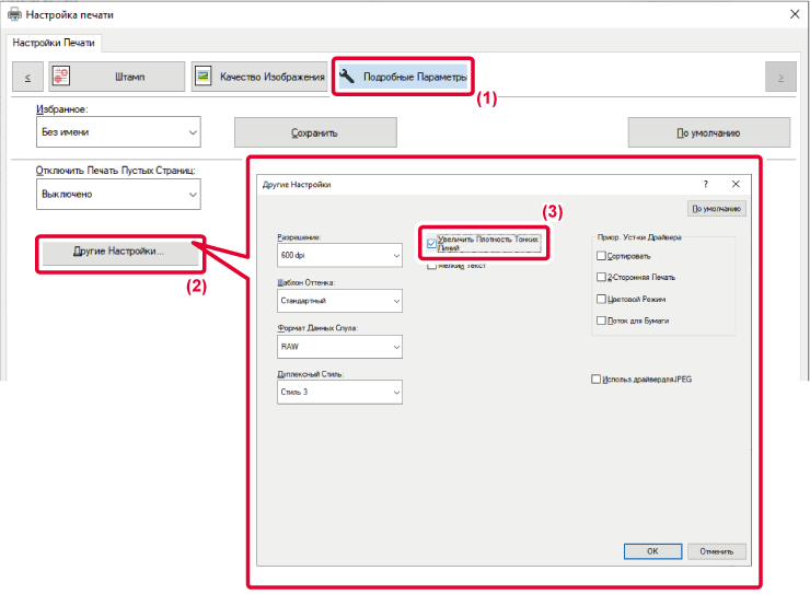 - Установите флажок [Увеличить Плотность Тонких Линий] (