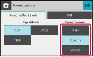 kompresie/kompresný pomer) na odoslanie naskenovaného obrázka počas