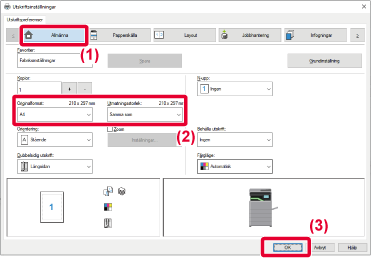 Utskriften börjar.Skrivardrivrutinens inställningsskärm