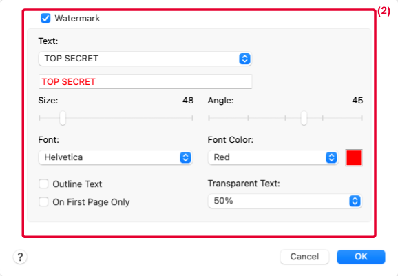 • Metin seçimi gibi ayrıntılı filigran ayarlarını yapılandırın.