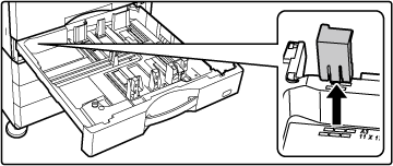 Zásobník pomalu zasuňte do zařízení. Nucené vložení papíru může způsobit pokroucení nebo špatné podání papíru.Při vkládání papíru do SRA3