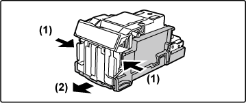 Vytáhněte pouzdro na svorky vpravo.Vyjměte prázdnou kazetu na svorky z pouzdra na svorky.