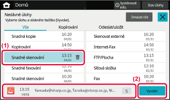 Po klepnutí na toto tlačítko se zobrazí obsah posledních