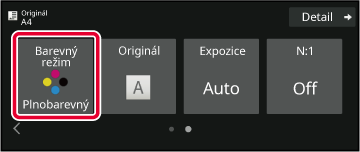 Jakmile nastavení dokončíte, klepněte na klávesu [OK]. Zkontrolujte, zda je vybrán určený barevný režim.Originál je zkopírován ve