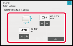 Po výběru tlačítka rozměr originálu klepněte na tlačítko [OK].Klepněte na tlačítko [OK].