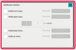 Jakmile nastavení dokončíte, klepněte na klávesu [OK].Tato funkce vkládá mezi každou sadu kopií
