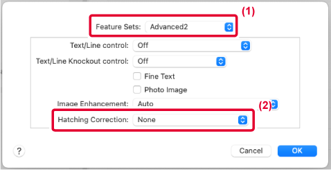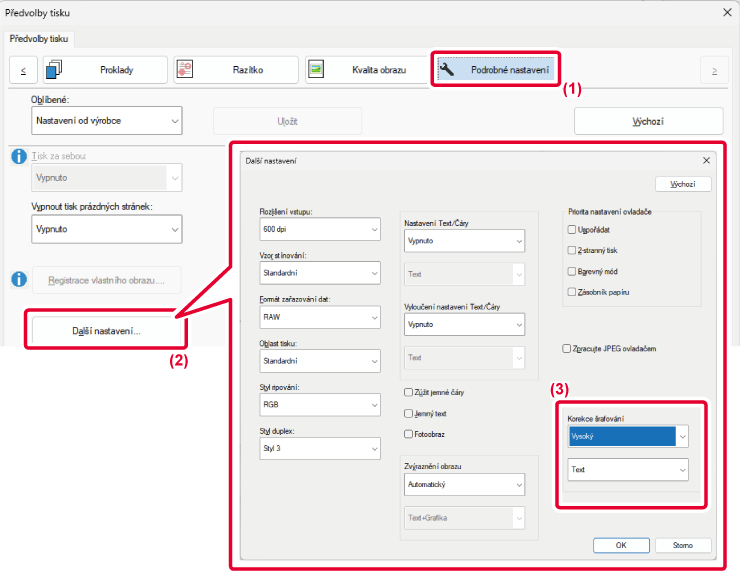 Funkci korekce šrafování v ovladači tiskárny lze použít ke