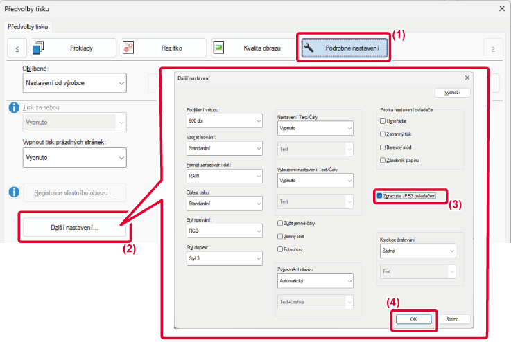 Tisknete-li originál obsahující obrazy ve formátu JPEG, umožňuje