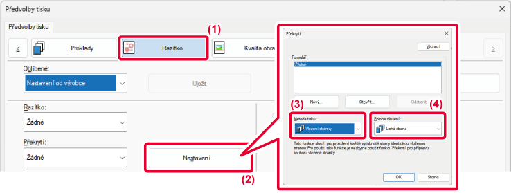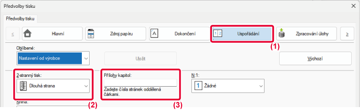 Tuto funkci použijte v případě, že chcete tisknout přední