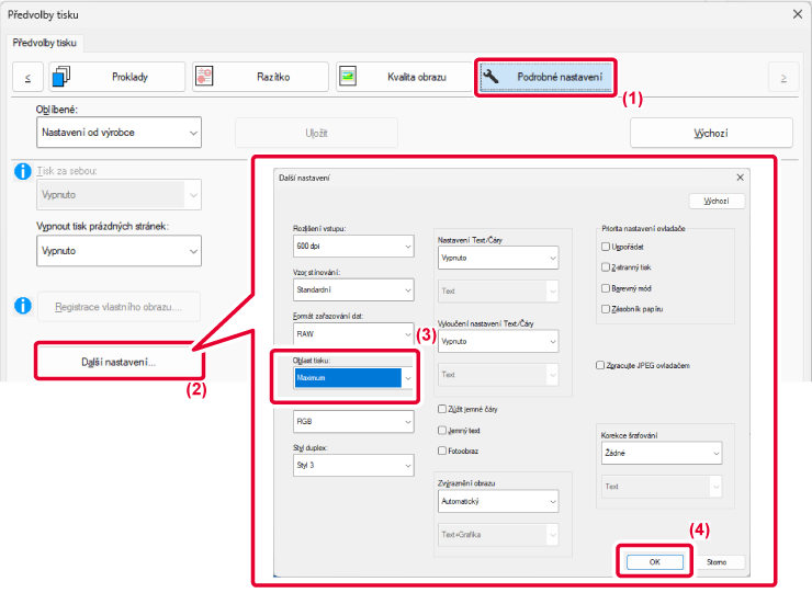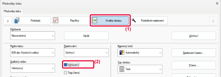 tato funkce vybrat, zda jsou obrazy vykresleny ovladačem tiskárny