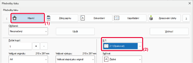 pro souběžný tisk jedné kopie pro prezentaci a jedné kopie jako