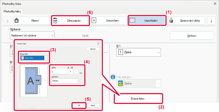 papír, a pak v nabídce [Pozice tisku] na záložce [Uspořádání] v okně